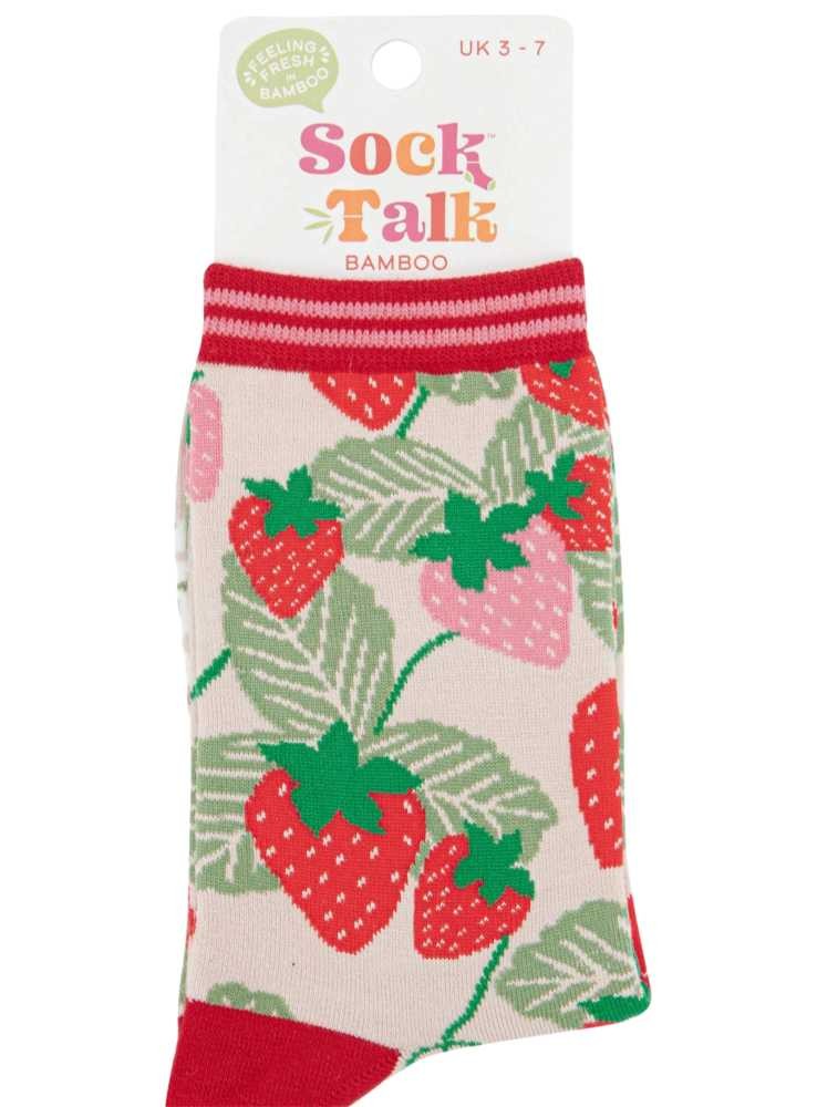Bambus strømper jordbær, dame, fra Sock Talk