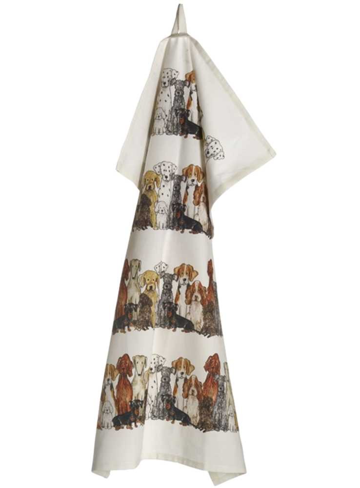 Viskestykke i genanvendt bomuld, 50x70 cm, med påtrykt motiv af forskellige hunderacer. Motivet er håndtegnet af designer Camilla Ståhl. En perfekt gave til hundeelskeren!